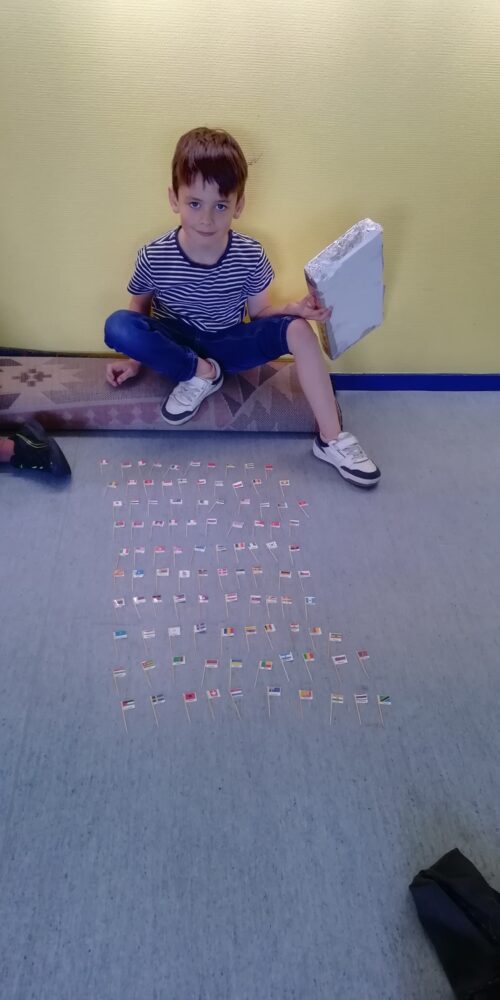 Depuis le début de l’année, les élèves de GS et CP comptent les jours d’école. Ils attendaient avec impatience le 100 ème jour d’école… et voilà il est arrivé mardi 22 avril et c’était la fête ! Les élèves de CP et les GS qui le souhaitaient ont ramené une collection de 100 éléments. Ils ont été très inventifs… Nous avons vérifié ensemble s’il y avait bien 10 paquets de 10. Pendant la journée, plusieurs défis ont été réalisés : un collier de 100 perles, une construction de 100 kaplas,et de 100 bouchons, puzzles de 100 pièces, 100 petits ronds en pâte à modeler, peinture de 100 doigts, coloriages du 100, compter jusque 100… L’après-midi, nous avons continué les défis : faire le silence pendant 100 secondes, lire 100 mots ! En sport, les élèves se sont échauffés en réalisant 100 jumping jacks, puis ils ont réussi à marquer 100 buts. Une journée bien remplie de bons moments partagés.