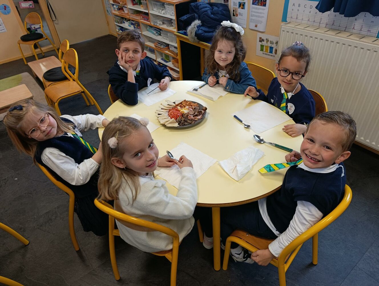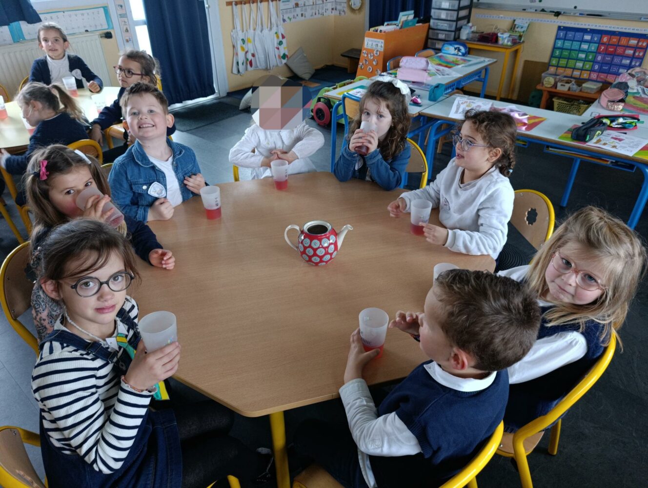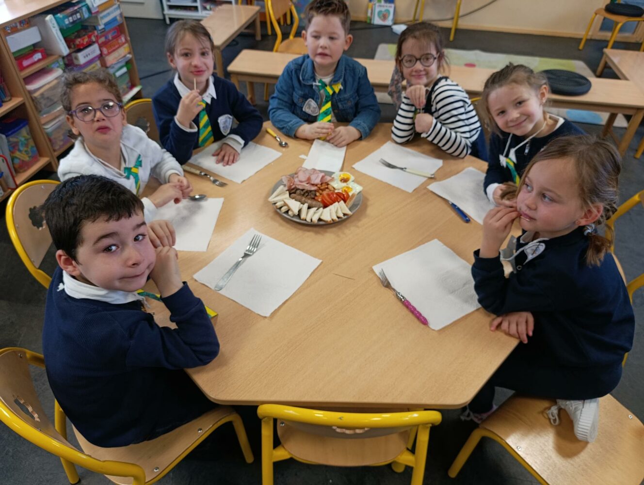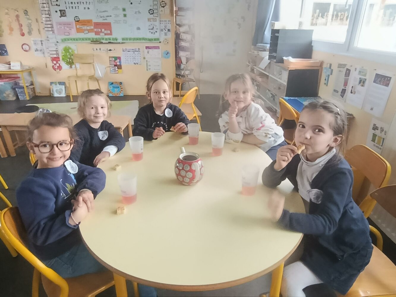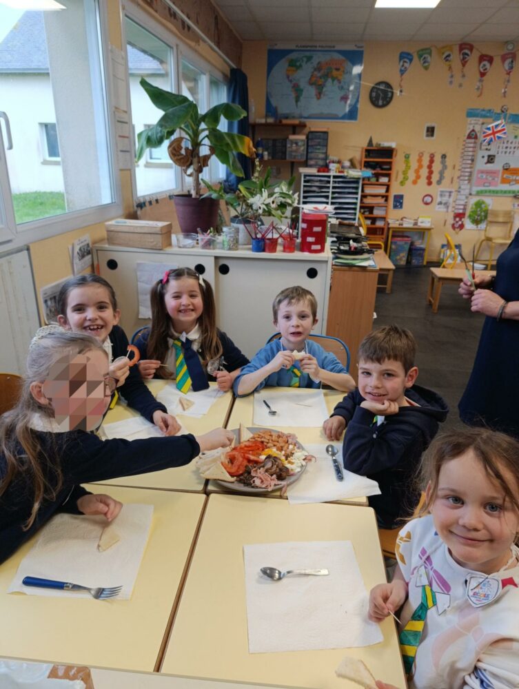 Vendredi 13 mars, nous avons passé une journée à l’anglaise : Habillés avec nos “uniformes”, nous avons dégusté an English breakfast ainsi que le tea time en milieu d’après-midi accompagné de scones réalisés par les grands.