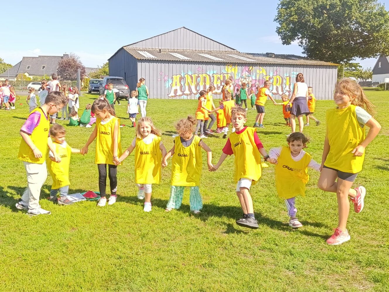 Vendredi 19 septembre, toutes les classes de l’école se sont retrouvées pour un grand jeu sportif et le chant dansé (la “foule moove”) proposés par l’Ugsel. Un rendez-vous apprécié par tous chaque année.